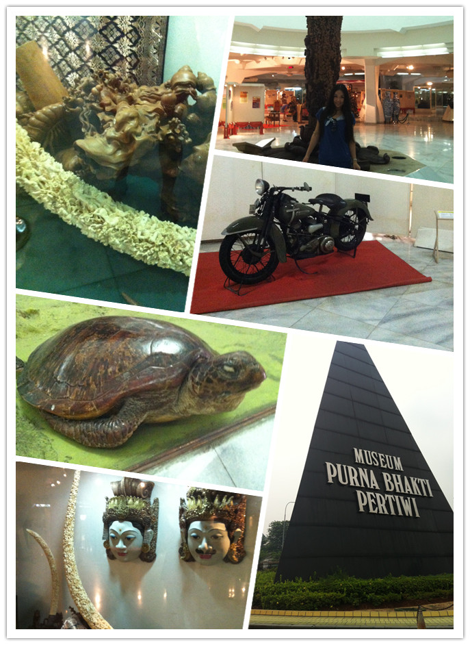 展會之余,我們參觀了印尼蘇哈多博物館,里面展出了印尼前總統(tǒng)蘇哈多所收藏的珍奇瑰寶及各國所贈送的禮品。之后我們游覽了印尼縮影公園Mini Park,她占地三百公頃,是世界上第一個介紹國土只是的縮影公園,展示了印尼27省的建筑以及各地各族的傳統(tǒng)習(xí)慣、文化風(fēng)情等。